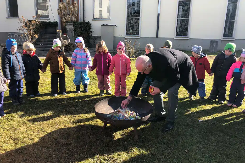 Passend zum Aschermittwoch wurden heute Vormittag im Garten der Pfarre Herrnau mit Pfarrer Alois Dürlinger die Reste der Faschingsschlangen verbrannt.