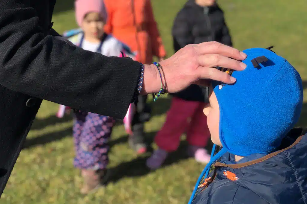 Anschließend haben die Kinder, die das wollten ein Aschenkreuz empfangen und wurden von Herrn Pfarrer Dürlinger gesegnet.